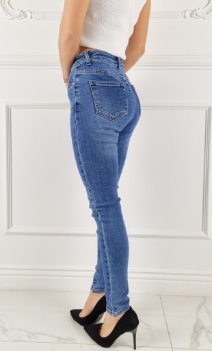 Spodnie jeansowe delikatnie przecierane , posiadają średni stan. Świetne do sportowego obuwia ale idealnie też sprawdzą się w połączeniu ze szpilkami, dzięki swojej uniwersalności, pasują niemal do każdej stylizacji. Elastyczny materiał podkreśla kobiecą sylwetkę. Spodnie są dopasowane, rozciągają się. Podkreśl swoje kobiece kształty! Spraw, by Twój codzienny Look był niepowtarzalny. Spodnie po obu stronach posiadają kieszenie.