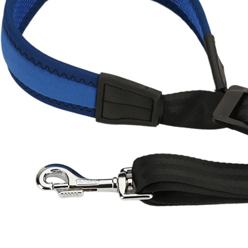 Regulowany, wyściełany silikonem pasek na szyję z haczykiem w kolorze niebieskim