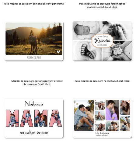 Foto magnes sprawdzi się jako upominek, prezent na urodziny dla przyjaciółki, czy prezent na walentynki dla chłopaka. Można go wykorzystać także jako forma podziękowań na różne okazję.