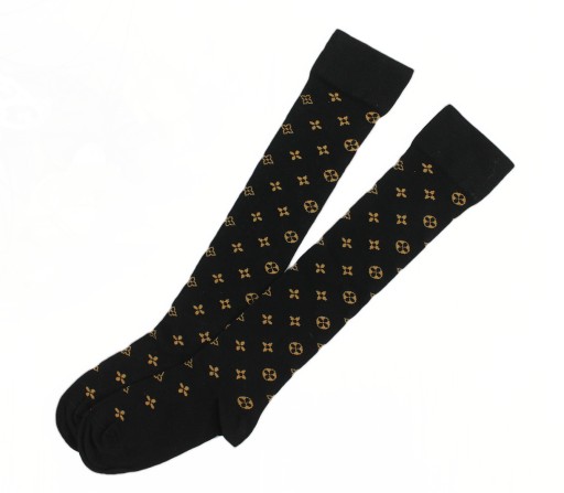 Nowość czarne długie skarpety z brązowymi zdobieniami.
