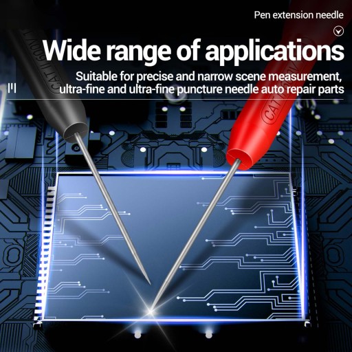 Igły sondy są bardzo ostre, bardzo odpowiednie do pomiaru małych pinów IC, lamp LED i komponentów.