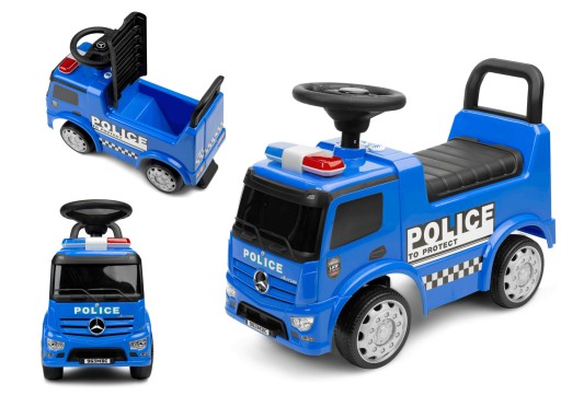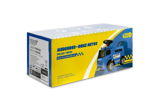 Jeździk Policja marki Toyz jest wykonany na licencji marki Mercedes. Intensywne kolory, sygnalizacja świetlna i dźwiękowa, a także kierownica z klaksonem to rzeczy, które sprawią, że jeździk pokochają przyszli policjanci. Pojazd wykonany jest z wysokiej jakości tworzywa sztucznego. Pod wygodnym siedziskiem znajduje się schowek na zabawki. Jeździk posiada zabezpieczenie przed przewróceniem się do tyłu.