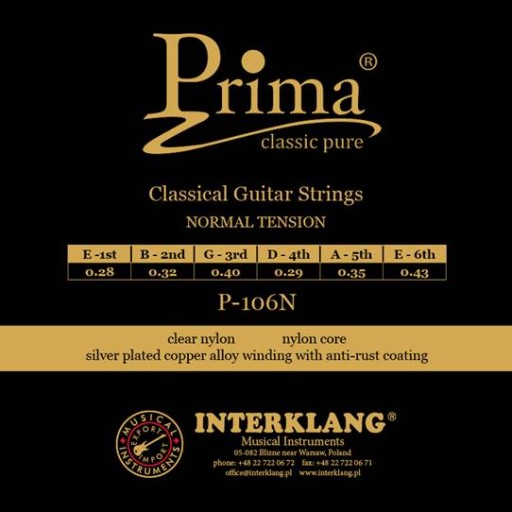 - KOMPLET STRUN DO GITARY KLASYCZNEJ PRIMA P-106N ( Z ZAPASOWĄ STRUNĄ D4 W KOMPLECIE )