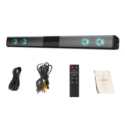 Ten 22-calowy soundbar jest stylowy i optymalny, z 3 trybami oświetlenia, 7-kolorowym oświetleniem obsługującym RGB, modną ozdobą Twojego