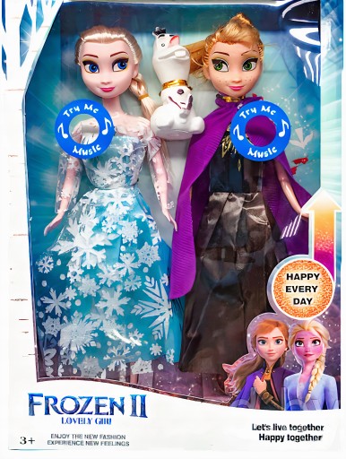 - Lalki posiadają naszyjnik po naciśnięciu, którego zaczyna rozbrzmiewać fragment piosenki LET IT GO w j. angielskim.