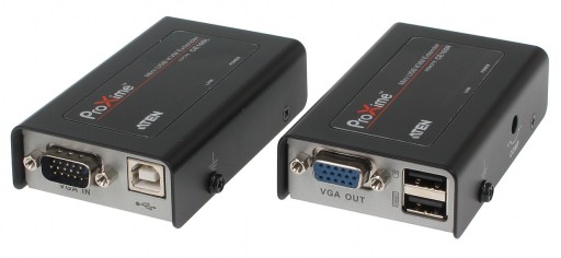 TRANSFORMATOR USB CE-100 zapewnia dostęp do komputera ze zdalnej konsoli USB (monitor VGA, klawiatura USB, mysz USB) za pomocą pojedynczej skrętki komputerowej UTP kat. 5e.