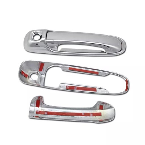 - 4 długie (pełne) nakładki na klamki chrom składające się z dwóch elementów w tym jeden z otworem na kluczyk