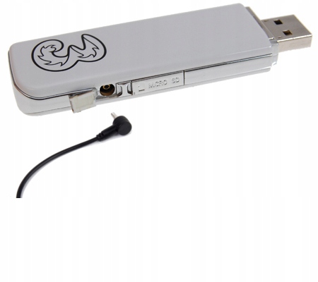 wtyk kątowy anteny biegnie wzdłuż modemu, umożliwiajac obrót kabla w gnieździe, miminalizuje ryzyko przypadkowego uszkodzenia gniazda modemu