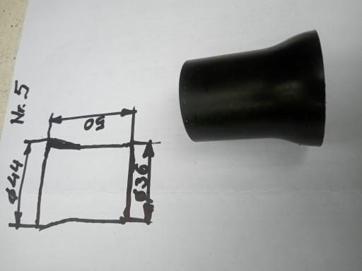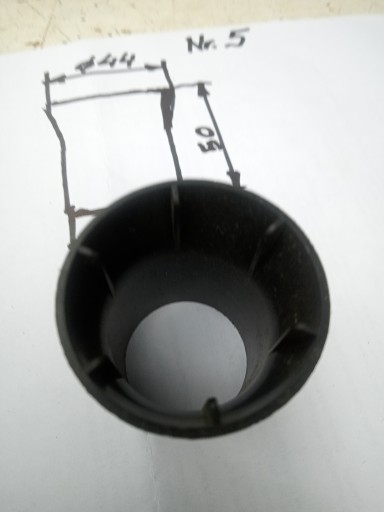 średnica zewnętrzna wlotu ( równa średnicy wewnętrznej otworu wylotowego w narzędziu ) - 35 mm ( walec ukośnie nieco ścięty )