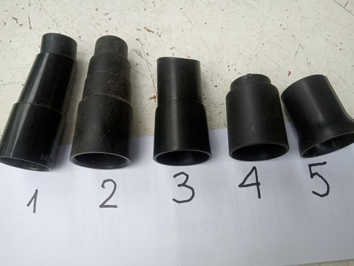 Nowe różne adaptery umozliwiające podłączenie rury odkurzacza lub worka na pył z narzędziami typu strug, szlifierka oscylacyjna lub obrotowa, szlifierka taśmowa i inne. Wykonane z czarnego plastyku .