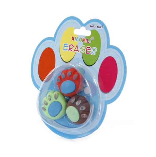 W zestawie 3 szt. gumek w kształcie kocich łapek.