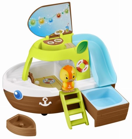 Czas na wakacje nad rzeką. Najlepsze miejsce na relaks i wspólną zabawę nad wodą to uroczy statek wycieczkowy. Wyciągnij drabinkę i wejdź na pokład statku. Otwórz dach aby wyczarować miejsce na piknik, wyciągnij basenik, do którego zwierzątka mogą ślizgać się po zjeżdżalni. Jest nawet mała łódź ratunkowa... tak na wszelki wypadek!
