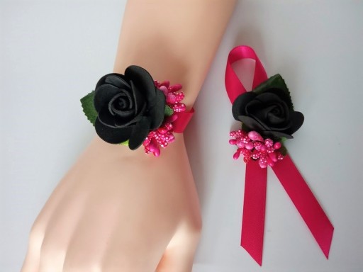 Na innej aukcji dostępne są pasujące do przypinek kotyliony na rękę dla pań.