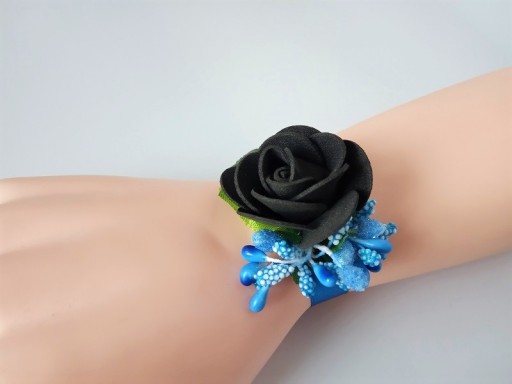 Na innej aukcji dostępne są pasujące do przypinek kotyliony na rękę dla pań.