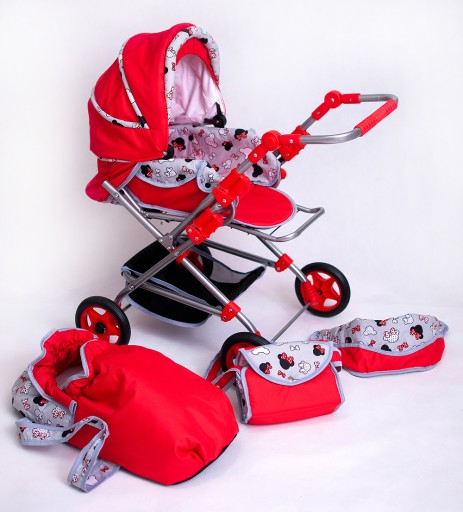 Może pełnić funkcję wózka głębokiego lub spacerówki.Posiada składaną budkę chroniącą lalkę od deszczu i słońca