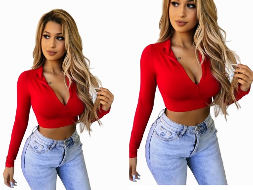 BORDOWY TOP TOPIK krótka BLUZKA Długi RĘKAW Dekolt regulowany ZAMKIEM XS/S