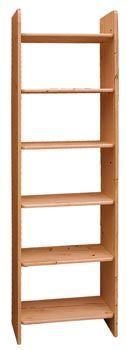 Regał wykonany jest z drewna sosnowego, lakierowany dwukrotnie półmatowym wodnym lakierem bezbarwnym metodą natryskową,