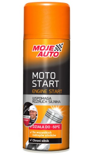 Moje Auto Samostart Silnika Moto Start toeterowy środek do rozruchu silnika. Działa przy każdej pogodzie, nawet wtemperaturze do -50°C. Zawiera specjalne substancje smarne, które w krytycznym momencie rozruchu chronią silnik. Polecany do silników benzynowych, Diesla, motocykli, kosiarek, pił, itp.