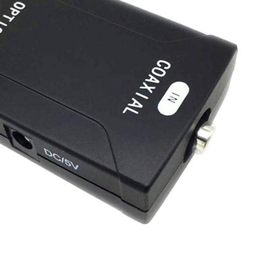Konwertuje cyfrowy koncentryczny S/PDIF na cyfrowy optyczny dźwięk Toslink.
