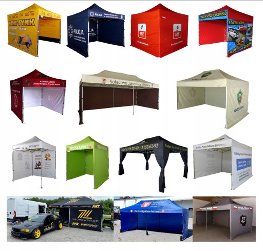 Na namiot możemy nadrukować wszystko z dowolnym życzeniem klienta - napisy, loga czy zdjęcia, jednakże na tej aukcji oferowany namiot jest BEZ NADRUKU. Namioty z nadrukami oferujemy w pozostałych ofertach.