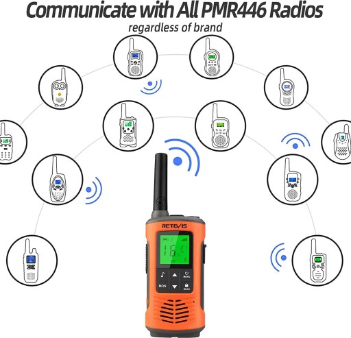 - Komunikuje się ze wszystkimi innymi radiami PMR 446 innych marek oprócz Retevis