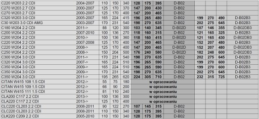 Podane w tabelach wartości przyrostu mocy i momentu obrotowego są uśrednione i mogą się różnić w zależności od wartości fabrycznych silnika i jego stanu technicznego.