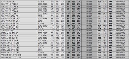 Podane w tabelach wartości przyrostu mocy i momentu obrotowego są uśrednione i mogą się różnić w zależności od wartości fabrycznych silnika i jego stanu technicznego.