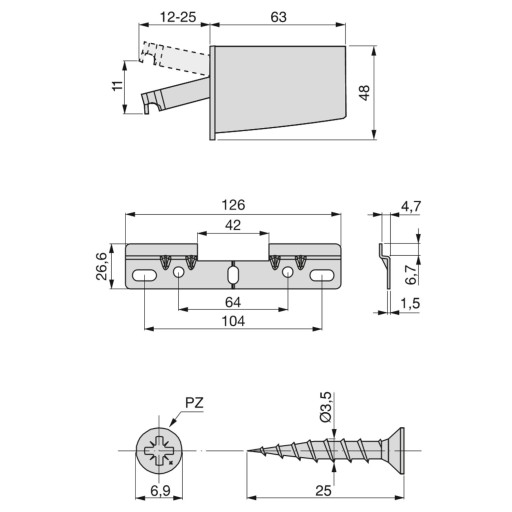 - Produkt zawiera: Zawieszka meblowa L+P, Osłona zawieszki L+P, Płyta, Śruby montażowe
