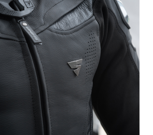 Model ten posiada panele wentylacyjne ze skóry perforowanej na obszarze łokci,