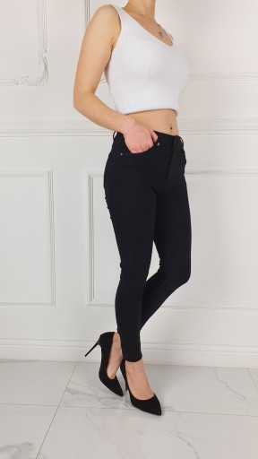 Świetne czarne klasyczne spodnie, posiadają wysoki stan. Świetne do sportowego obuwia ale idealnie też sprawdzą się w połączeniu ze szpilkami, dzięki swojej uniwersalności, pasują niemal do każdej stylizacji. Elastyczny materiał podkreśla kobiecą sylwetkę. Spodnie są dopasowane, rozciągają się. Podkreśl swoje kobiece kształty! Spraw, by Twój codzienny Look był niepowtarzalny. Spodnie po obu stronach posiadają kieszenie.