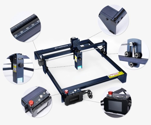 Grawer i wycinarka laserowa ATOMSTACK A10 Pro wykorzystuje zintegrowany pręt śrubowy zamiast połączonego złącza. Silnik krokowy i śruba są zintegrowane, co sprawia, że ruch lasera jest bardziej precyzyjny, a sprzęgło trwalsze. Konstrukcja anodowana w całości ze stopu aluminium sprawia, że jest on trwalszy i zapewnia większą dokładność. Montaż można generalnie zakończyć w ciągu 10-20 minut.