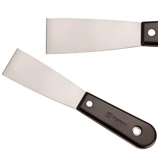 Szpachla malarska TOPEX (nr ref. 18B204) o szerokości części roboczej 40 mm. Znajduje swoje zastosowanie podczas prac remontowych i wykończeniowych, m.in. przy nakładaniu gipsu czy zeskrobywania zanieczyszczeń z powierzchni. Ostrze dodatkowo polerowane. Uchwyt wykonany z mocnego tworzywa sztucznego. Marka TOPEX skierowana jest do majsterkowiczów.