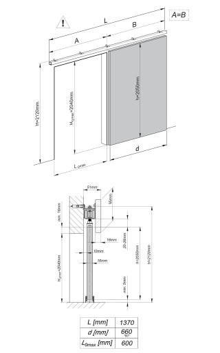 Drzwi przesuwne Dori- rysunek techniczny: