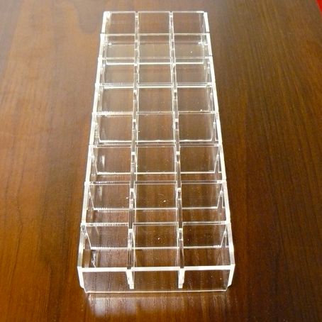 Stojak / organizer wykonany jest z przeźroczystej plexi o grubości 2 mm.