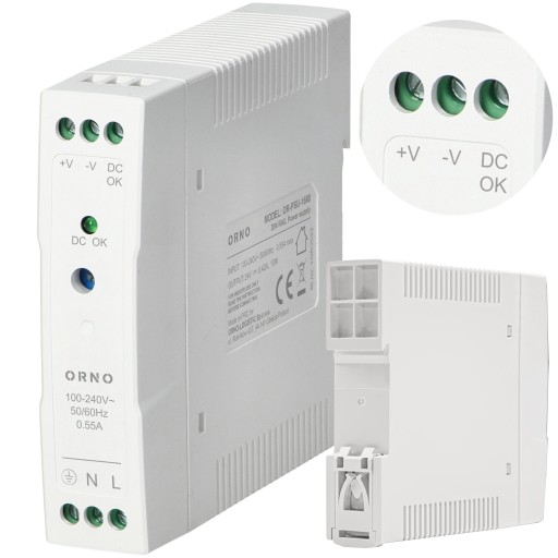 - Oryginalnie zapakowany zasilacz na szynę DIN
