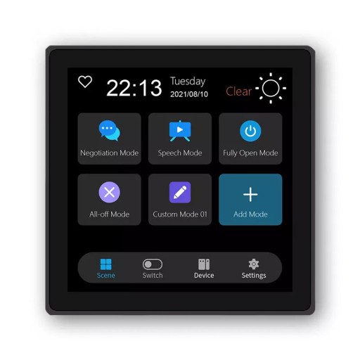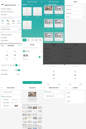 Jest to inteligentny przełącznik ZigBee, a także wielofunkcyjny panel scen po połączeniu z inteligentną bramką ZigBee Tuya. Możliwość sterowania urządzeniami takimi jak światła, zasłony, klimatyzatory, oraz inne urządzenia domowe za pośrednictwem panelu. Panel steruje urządzeniami na podstawie scen TAP TO RUN dodanych w aplikacji. Wystarczy jedno dotknięcie, aby szybko uruchomić urządzenia z gotowymi scenariuszami, takimi jak uruchomienie klimatyzatora, odsłonięcie zasłon, projektory czy też wyłączenie światła (tryb domowy).