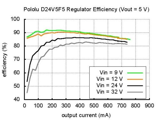 Minimalne napięcie wejściowe tego stabilizatora jest sumą napięcia Drop-out i napięcia wyjściowego (5 V), natomiast maksymalne napięcie wejściowe wynosi 36 V, przy jednoczesnym zachowaniu prądu do 500 mA. W przypadku napięcia wejściowego większego niż 20 V zaleca się wlutować kondensator 33 uF / 50 V pomiędzy VIN i GND, zabezpieczy to układ przed tzw. szpilkami. Typowa efektywność układu wynosi od 85% do 93%. Wyprowadzenia mogą być podłączone za pomocą standardowych 2,54 mm goldpinów, co umożliwia zamontowanie układu na płytce stykowej, łatwe podłączenie przewodów lub umieszczenie w dedykowanej płytce PCB.