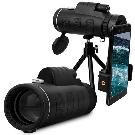 - Bogaty zestaw akcesoriów: statyw tripod, uchwyt na telefon, estetyczny futerał na teleskop, smyczka oraz ściereczka do czyszczenia soczewki.