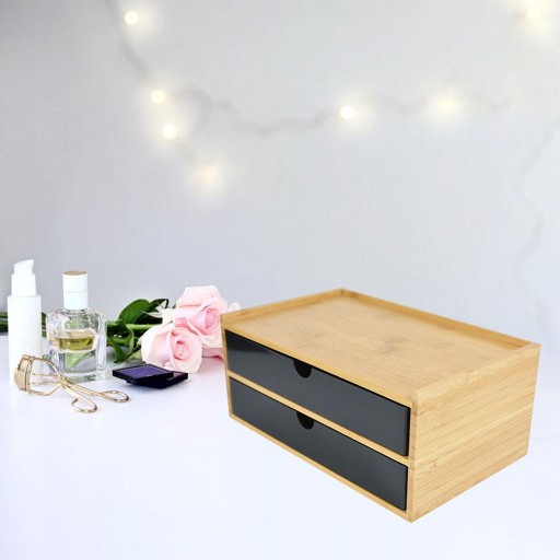 Bambusowa Szuflada Desktop Nożyczki usługi Premium Do Badania Łazienka Czarna Podwójna Warstwa