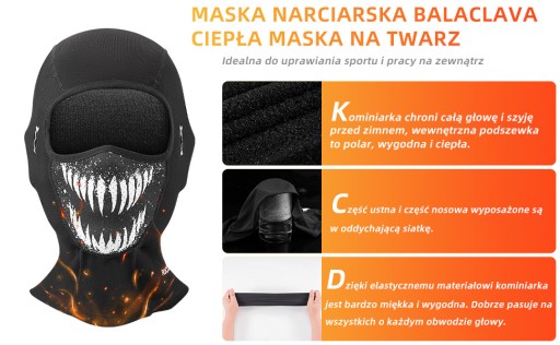 - Utrzymaj ciepło - polar termiczny wewnątrz kominiarki zimowej utrzymuje ciepło głowy i twarzy, zapewniając najbardziej komfortową temperaturę w chłodne dni.