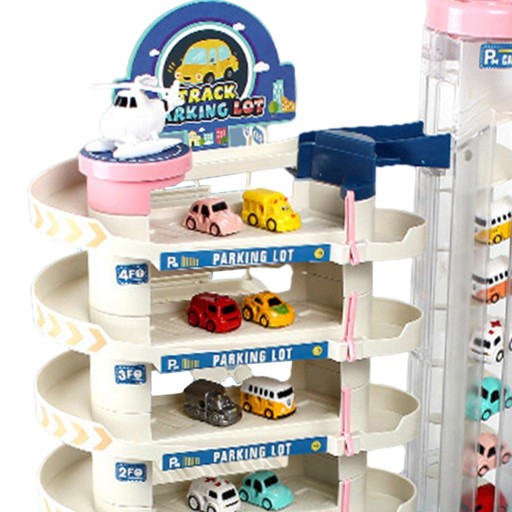 W tym miejskim garażu znajduje się tor wyścigowy, w tym garaże, samochody i helikopter, dzięki czemu Twoje dzieci będą z radością bawić się w tę grę.