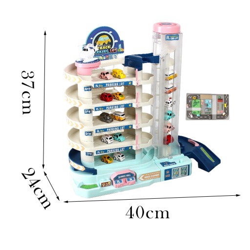 Te samochodziki mogą stabilnie jechać z najwyższego piętra na pierwsze piętro, a następnie z powrotem na najwyższe piętro windą, dzięki czemu gra odbywa się cyklicznie. Dzieci mogą również wypuścić samochód z pierwszego piętra.