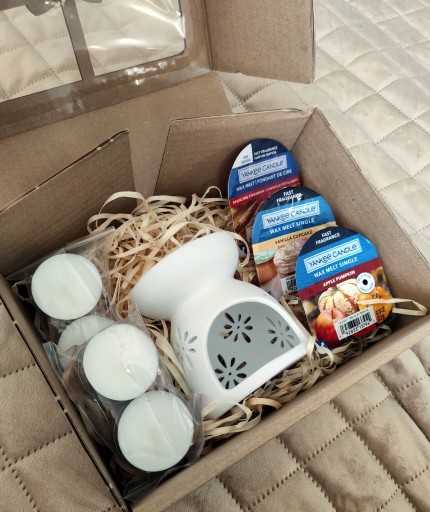 ❤️ KOSZ PREZENTOWY BOX KOMINEK ZAPACHOWY + 3 WOSKI ❤️