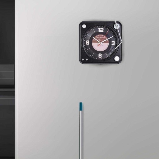 Zegar ścienny wiszący 35cm Gramofon w stylu retro na baterie czarny