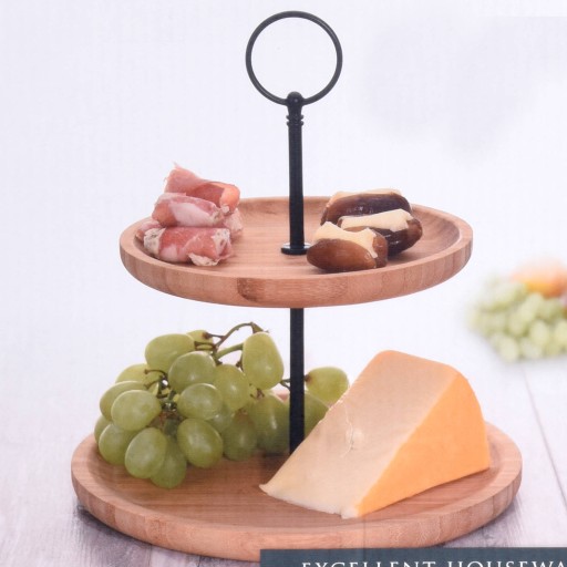 Patera 2-piętrowa BAMBUSOWA na ciastka ciasto drewniana