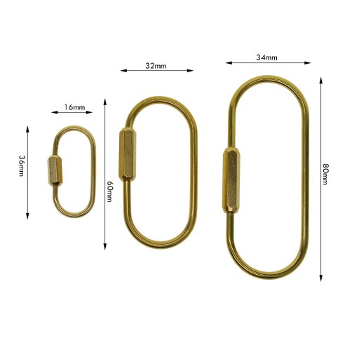 Super mocne i trwałe breloczki z blokadą śrubową wykonane z najwyższej jakości litego mosiądzu, atrakcyjne, lekkie, wytrzymałe, łatwe w użyciu i bezpiecznie trzymają klucze.