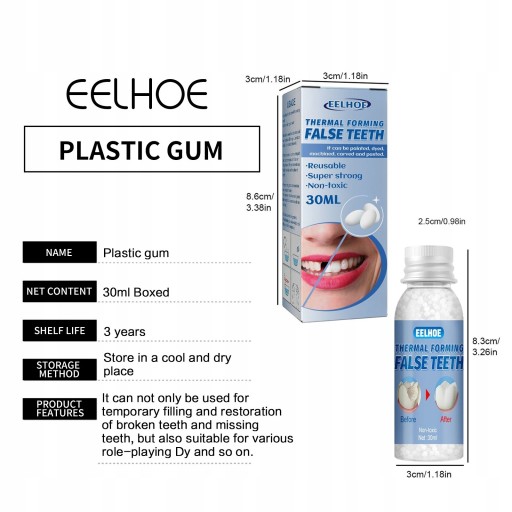 4. Może być stosowany do nadmiernych zębów, złamanych zębów, brakujących zębów, protez halloweenowych itp.