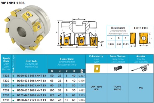 GŁOWICA FREZARSKA NASADZANA 90° FI 50 NA PŁYTKI LNMT 1306 T228