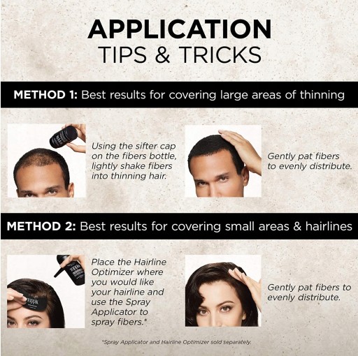 - Aby użyć produktu, należy potrząsnąć pojemnikiem w odległości około 5 centymetrów od obszaru fryzury, który chcą Państwo zagęścić, a następnie ustawić dyszę tak, aby była ona skierowana ku dołowi.