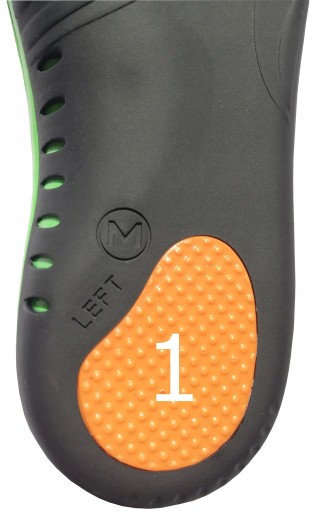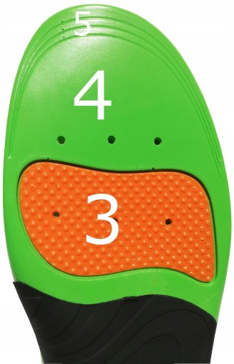 - Materiał na śródstopiu wkładki zawiera wypustki zapobiegające przesuwaniu się wkładki w bucie